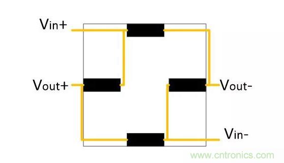 當壓力敏感結構受到氣壓壓力時,壓敏電阻的阻值發生變化,進而引起輸出電壓Vout發生變化,通過輸出電壓值與壓敏電阻的阻值變化的關系,實現壓力值的測量。