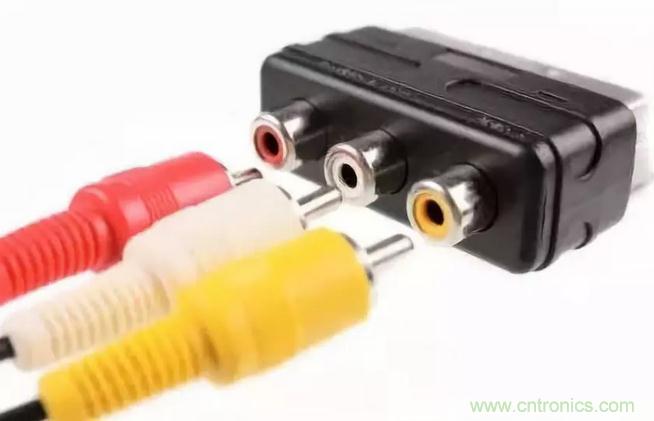 復(fù)合視頻接口是最基本的視頻連接器接口,過去主要用于家用視頻設(shè)備。這種接口常見于老款電視機(jī)、VCR和家用游戲機(jī),線和端子都是黃色。因為對YUV三種源信號(Y:亮度,U/V:顏色)進(jìn)行同步復(fù)合(composite),所以稱為復(fù)合視頻。在同一個信道(line)傳輸亮度和顏色信號,所以畫質(zhì)遠(yuǎn)不如后來出現(xiàn)的其他接口標(biāo)準(zhǔn)。復(fù)合視頻接口輸出的視頻分辨率最高可達(dá)SD(—standard definition)級,也就是480i(NTSC)或576i(PAL)。模擬視頻連接器通常不包含音頻信號,因此如上圖所示,需要單獨(dú)的音頻線。一般用白色(左)和紅色(右)兩個連接器傳輸立體聲信號。