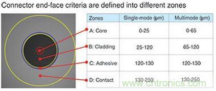 圖2:連接器端面標(biāo)準(zhǔn)被定義到不同的區(qū)域。