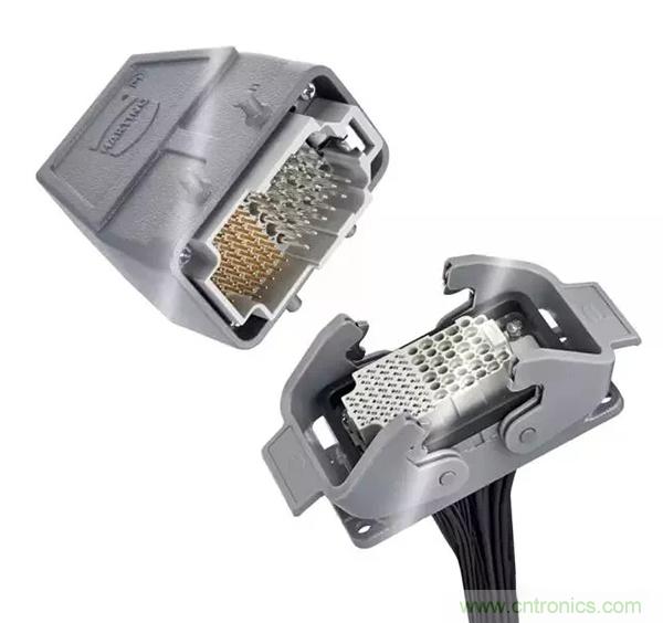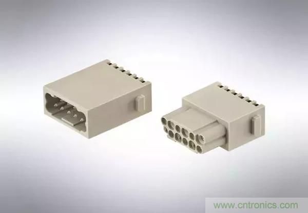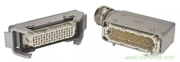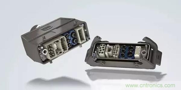 第二個例子是,Han® 高密度模塊:滿載的情況下,在模塊中有25個插針,能夠傳輸4A/50V的信號。其他具有更高的接觸密度的Han®模塊也在開發之中。