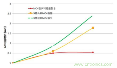 此外,盡管有些連接器在與MC4互插后電阻增加不明顯,但這同樣不能保證互插連接器在經過幾個月甚至幾年之后電阻的穩定性。這也就是大部分不同廠家的連接器在互插并使用一段時間后才發生問題的原因。