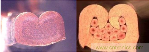 涉及到壓接工藝時我們需要注意剝線環節,標準中對于在剝線中切斷的銅絲數是有嚴格規定。如果切斷的銅絲較多就會影響壓接及通流質量,從而造成較高的溫升。而在失效的樣品中我們發現:電纜在壓接前內部很多銅絲已被剪斷(見圖10)。