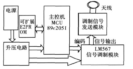 本系統(tǒng)的閱讀器可在6cm范圍內(nèi)識(shí)別應(yīng)答器的有無,若有應(yīng)答器在監(jiān)測范圍內(nèi),則給出明確的指示并讀取應(yīng)答器預(yù)設(shè)的4位編碼,然后顯示;另外,應(yīng)答器部分還可以通過開關(guān)設(shè)置4位編碼在閱讀器識(shí)別范圍內(nèi)送出編碼信號(hào)。同時(shí)閱讀器還具有對(duì)應(yīng)答器的編碼進(jìn)行寫入的功能,由應(yīng)答器接收并儲(chǔ)存。設(shè)計(jì)中重點(diǎn)是保證正確率,可以從軟件上增加校驗(yàn)碼來提高無線傳輸?shù)目煽柯省?/p>