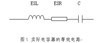 實際電容器的電路模型如圖1所示,它是由等效電感(ESL)、電容和等效電阻(ESR)構成的串聯網絡。