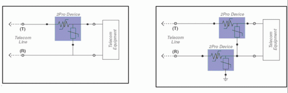 圖1a. 2Pro器件用于不接地系統(tǒng)。 圖1b. 2Pro器件用于接地系統(tǒng)。