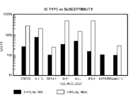 例如,典型情況下,一個人所帶電荷可以表征為一個150pF的電容器與330Ω的電阻器串聯。推算其靜電電壓有可能在8~15kV范圍內,甚至高達25kV。當人接近系統時,靜電場(ESD)和不均勻電壓分布會導致系統內元件被損壞。一般來說,ESD很容易損壞未受保護的IC。據統計,各類IC的ESD擊穿電壓分布如圖1所示。