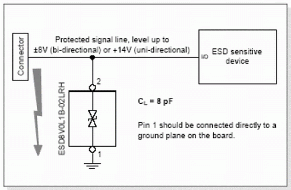 - 采用英飛凌ESD8V0L1B-02LRH二極管配置