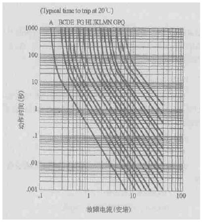 圖1 RXE系列元件20℃時(shí)的動(dòng)作保護(hù)特性曲線(xiàn)