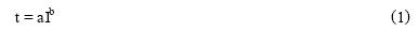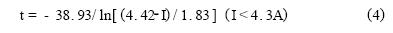 由于PolySwitch元件具有PTC效應(yīng),其動(dòng)作保護(hù)特性曲線(xiàn)部分的數(shù)學(xué)模型可參考PTC器件的阻溫特性來(lái)建立。該類(lèi)特性的數(shù)學(xué)模型可采用冪函數(shù)或?qū)?shù)函數(shù)的形式。設(shè)其數(shù)學(xué)公式具有如下形式;