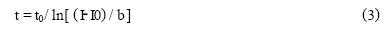 式中t0,I0,b均為常數(shù)。由圖1曲線(xiàn)部分曲線(xiàn)取若干特殊點(diǎn),經(jīng)計(jì)算機(jī)進(jìn)行數(shù)學(xué)處理,得到t0,I0,b的具體數(shù)值: