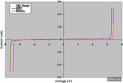 當對以上器件的DC性能進行比較的時候,結果看起來似乎是相同的(參見圖2所示曲線)。此外,它們都聲稱符合IEC61000-4-2第4級標準,這就意味著它們將都經受住高達8kV接觸電壓的ESD沖擊。