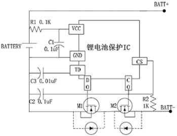 單節(jié)鋰電池保護(hù)IC的應(yīng)用電路很簡單,只需外接2個電阻、2個電容和2個MOSFET,其典型應(yīng)用電路如圖1所示。