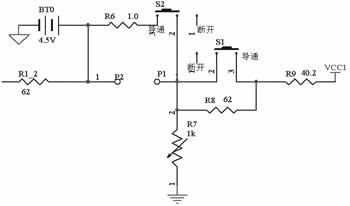 根據(jù)鋰電池保護(hù)IC的工作原理設(shè)計的測試電路如圖2所示,圖3詳細(xì)說明了圖2中模塊B的電路。模塊A在測試過流保護(hù)時為CS引腳提供電壓,模擬圖1中的CS引腳所探測到的電壓。調(diào)整模塊中的可變電位器可為CS引腳提供可變電源,控制其中的跳變開關(guān)可為CS提供突變電壓。模塊B為電源,模擬為IC提供工作電壓。調(diào)整電路中的可變電位器R7可為整個電路提供一個可變電壓,在測試過充電保護(hù)電壓和過放電保護(hù)電壓時使用。控制模塊中的開關(guān)S1的閉合為測試電路提供一個跳變電源,在測試IC的過充、過放和過流延遲時使用。