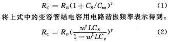 考慮圖1所示變容管諧振電路,不難看出回路的頻率調諧范圍依賴于變容管的有效電容變比和電路中并、串聯電容的大小。