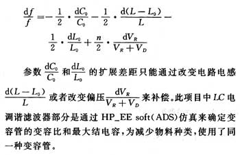 一些設備要求在調諧時,2個或多個同時調諧的電路之間的頻率關系保持恒定,即稱之為跟蹤(Tracking)。這要求各變容管在任意調諧電壓時的偏差均很小。在要求覆蓋相同的頻率寬度,但各自的起止頻率不同時。(比如超外差式接收機中本振和射頻電路就是這樣),就需要特別留意減小跟蹤誤差。根據前述對不同的變容管,可以通過串聯或并聯不同的電容來減小跟蹤誤差,其所必須預先考慮的頻偏可描述為: