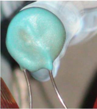 圖3:MOV14D471 在600V*1A 電流試驗后圖片 圖4:MOV14D471 在600V*2A 電流試驗后圖片