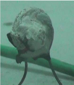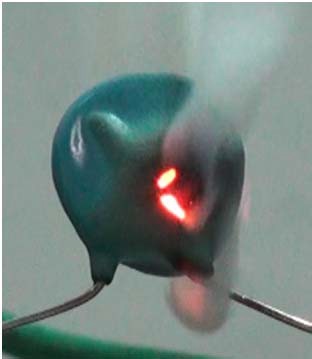 圖5:MOV14D471 在600V*5A 電流試驗后圖片 圖6:MOV14D471 在600V*10A 電流試驗后圖片