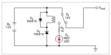 這個方法是用一只繼電器來處理反極性電壓問題。例如,12V供電系統使用12V的繼電器。當為電路施加正確極性時,D1為反偏,繼電器S1保持關閉狀態。則輸入和輸出電源線正常連接到繼電器的端子,電流就流到最終電路上。二極管D1阻擋了繼電器的供電,防止電路耗電?! ?br />