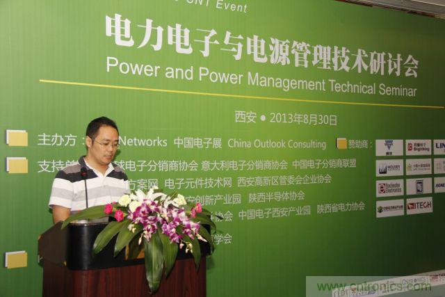 本屆研討會(huì)最大的亮點(diǎn)是電力電子和電源行業(yè)各路專家云集,不僅吸引到了像大聯(lián)大、Vishay、君耀電子和豐寶電子等國(guó)內(nèi)外知名半導(dǎo)體供應(yīng)商及分銷商的技術(shù)專家親自到場(chǎng)發(fā)表主題演講,而且還吸引到了陜西電力科學(xué)研究院電網(wǎng)技術(shù)中心高級(jí)工程師陳宜凱、陜西省電源學(xué)會(huì)、西安大功率半導(dǎo)體骨干企業(yè)衛(wèi)光科技總工程師高勇、西安交通大學(xué)電力電子與新能源技術(shù)研究中心楊旭教授。現(xiàn)場(chǎng)觀眾與工程師們進(jìn)行零距離交流互動(dòng),將整個(gè)研討會(huì)一次次推向高潮。