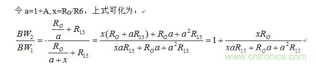 從上式看出,當(dāng)A較小時(shí),R6的加入確實(shí)有擴(kuò)展帶寬的作用,但R6的取值不能太大。當(dāng)R6取得很大時(shí),x=R0/R6趨近于0,BW2/BW1趨近于1,也就不能擴(kuò)展帶寬了。