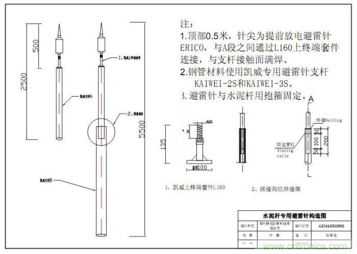 此設(shè)計(jì)圖適用于線路鐵塔(等級(jí)10KV-500KV),在個(gè)別鐵塔無法安裝避雷線(地線)的時(shí)候更是唯一的防雷擊解決辦法。我公司與電力設(shè)計(jì)院公司聯(lián)合研發(fā)設(shè)計(jì)的此種保護(hù)方式在一些常規(guī)條件下無法安裝避雷地線的情況下得到大量使用,實(shí)踐證明了此種設(shè)計(jì)的科學(xué)性和安全性。