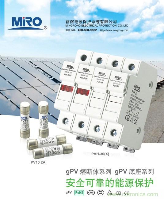 浙江茗熔電器生產(chǎn)的PV系列熔斷器是專門為保護太陽能光伏(PV)系統(tǒng)而設(shè)計的,適用于光伏組件串和光伏方陣電能系統(tǒng)中光伏匯流箱的應(yīng)用;熔斷器能夠分斷故障PV陣列(反向電流、多排陣列故障)產(chǎn)生的較低過載電流,以保護和隔離光伏組列。該系列產(chǎn)品額定工作電壓DC 1000V,額定工作電流2A~30A的光伏電能系統(tǒng)中,具有全范圍分斷能力的熔斷體,額定分斷能力DC1000V/10kA。PV10光伏熔斷體由純銀帶/絲制成的熔體封裝于由高強度有機材質(zhì)制成的熔管內(nèi);熔管中充滿經(jīng)化學(xué)處理過的高純度石英砂作為滅弧介質(zhì);熔體兩端通過焊接與接觸帽(內(nèi)蓋)牢固電連接,內(nèi)置的絕緣隔離墊片,能滿足光伏熔斷器系統(tǒng)在極端使用條件下的應(yīng)用,確保性能更穩(wěn)定,表現(xiàn)更優(yōu)異、可靠。 產(chǎn)品符合IEC60269-6和GB/T 13539.6標準。熔斷體外形尺寸和基本性能與國內(nèi)外同類型產(chǎn)品接近,故能作為國外引進設(shè)備上同類型熔斷體的替換。