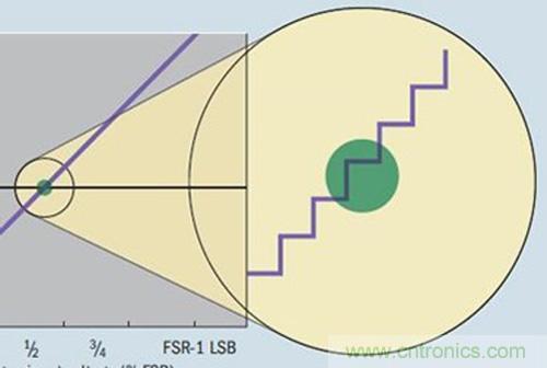 總之,沒有能為A/D轉換器計算TUE最大值的確定公式,因為該誤差取決于A/D轉換器工作時的輸入范圍。如果系統不需要采用A/D轉換器的整個輸入范圍,那么工程師可通過使該器件遠離其傳遞函數的端點運行來最大限度地減小TUE。