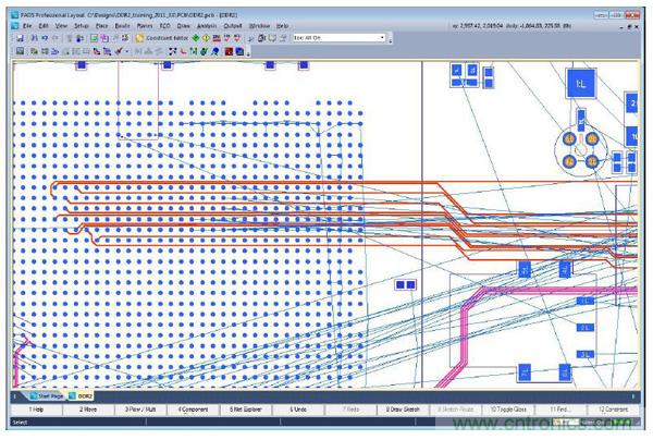 繪制草圖路徑非常輕松。草圖路徑的方向決定了起始管腳和結束管腳。根據需要,草圖布線器在完成選定網絡的布線之前,會綜合考慮多達十種不同的方法,但即便如此,它仍能在很短的時間內完成操作。每種方法都會考慮每個管腳出線方向對應的布線結果,然后按照最佳結果對應的方法布局走線。