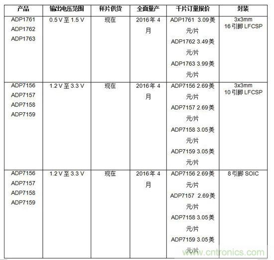 ADP176x和ADP715x LDO的目標應(yīng)用包括:無線基站、有線通信、工業(yè)儀器儀表、高端音頻設(shè)備和醫(yī)療設(shè)備。 這些最新的LDO能為噪聲敏感型精密模擬和RF應(yīng)用——尤其是需要更高的數(shù)據(jù)速率時——提供更干凈的供電軌、更快的瞬態(tài)響應(yīng)和更高的電源電壓抑制比(PSRR)。