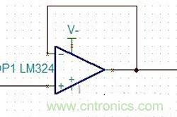 我們先用LM324電壓跟隨器做一個簡略的草圖,圖片如下所示: