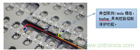 另外一種是電芯外部增加fuse的設(shè)計(jì)方案,比如在模組的busbar上設(shè)計(jì)薄弱的過流界面。模組短路時(shí),busbar會(huì)熔斷,從而起到短路斷開功能。這樣設(shè)計(jì)有一個(gè)優(yōu)點(diǎn):短路斷開時(shí),電芯不會(huì)有反向電壓。同樣的,在pack系統(tǒng)中,該反向電壓會(huì)比較高,busbar熔斷常伴隨著拉弧等安全問題。