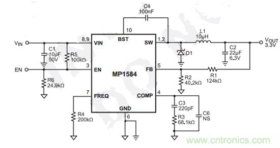 可配置輸出1.8V,3V,5V等的典型電壓。在上圖中D1,L1,C2組成了典型的buck回爐,可以看出D1的電路符號是肖特基二極管。