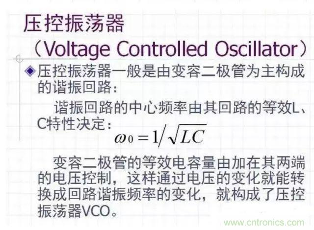VCO的選擇要素:● High spectral purity● Linear voltage-frequency transfer characteristic● Good frequency stability to temperature● Frequency deviation capability 》》the max. PLL capture range● Time response● Low power consumption and Output level● Output harmonic level and tuning sensitivity● Phase noise