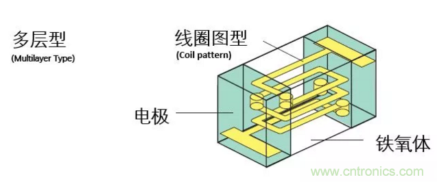 多層片狀電感的制作工藝:將鐵氧體或陶瓷漿料干燥成型,交替印刷導電漿料,最后疊層、燒結成一體化結構(Monolithic)。