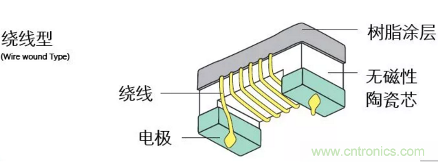 繞線型工藝,其導線可以做到比多層和薄膜結構粗,因此可以獲得極低的直流電阻。也意味著極高的Q值,同時可以支持較大的電流。將無磁性的陶瓷芯換成鐵氧體磁芯,可以得到較高的感值,可以應用與中頻。
