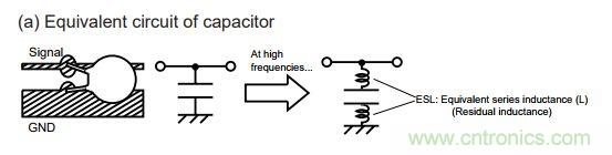 一般來說,直插件的引線較長,其寄生電感比SMD大;電解電容內部有大量卷繞結構的鋁箔,寄生電感比其它工藝的電容大。1206尺寸的MLCC內部電極面積和焊接端子截面明顯比0805大,所以尺寸越大的MLCC,自諧振頻率就越低。