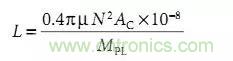 2)電感量計算,如圖: