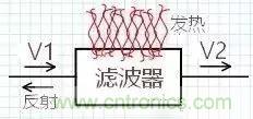 插入濾波后,會有什么結果?V2 一定小于 V20,也就是說插入濾波器后輸出變小了,為何輸出變???一部分變成熱量、一部分被濾波器擋住返回了,如圖: