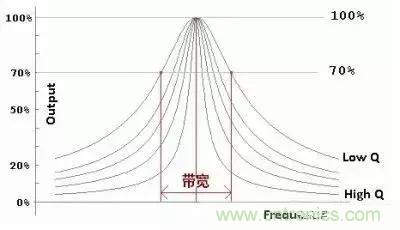 有些電路我們需要高 Q 值,比如振蕩器,Q 值越高越容易起振,比如收音機機調諧回路,Q 值越高選臺時越不容易串臺,這主要是 Q 值高時-3dB帶寬變狹的緣故。如下圖所示: