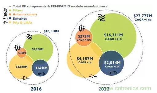 2016~2022年手機(jī)射頻前端模塊和組件市場(chǎng)