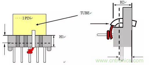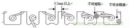 1)引腳為垂直引腳時,可留錫尖,但錫尖長不超過1.5mm。