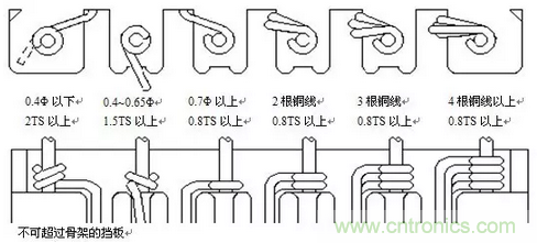 2)不用的引腳剪去時,應在未繞線前先剪掉,以防繞完線后再剪除時會刮傷線或剪錯腳,而且可以避免繞線時纏錯腳位。