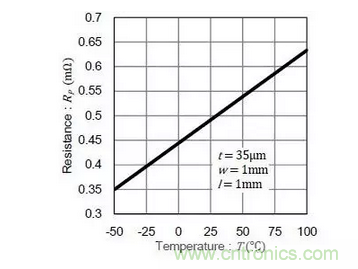 因此,當(dāng)3A電流在25°C時流通PCB表面上銅時,電壓降約24.5mV。然而,溫度上升至100℃時,電阻值增加29%,電壓降變?yōu)?1.6mV。