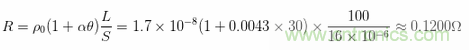 其次,我們需要知道保護(hù)性中性線電纜的電阻是多少。這個值可以根據(jù)具體線路參數(shù)來考慮。方便起見,不妨先規(guī)定這條保護(hù)性中性線電纜的長度是100米,電纜芯線截面是16平方毫米,它的工作溫度是30攝氏度,則它的電阻為: