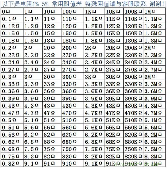 阻值表