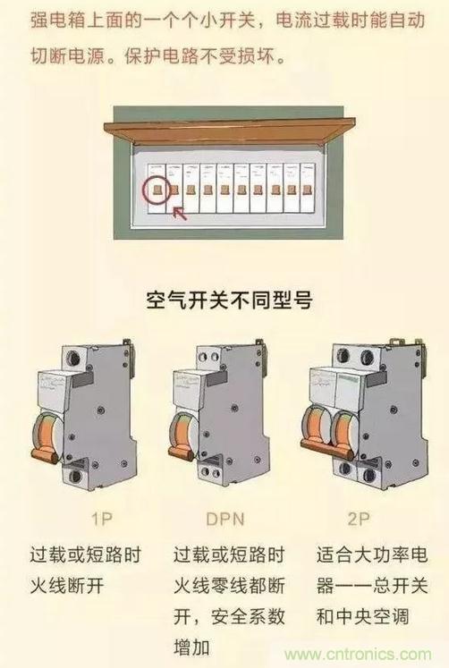 空氣開關(guān)是用來保護全家電路的,當我們的電流過大的時候會引發(fā)開關(guān)自動切斷電源。