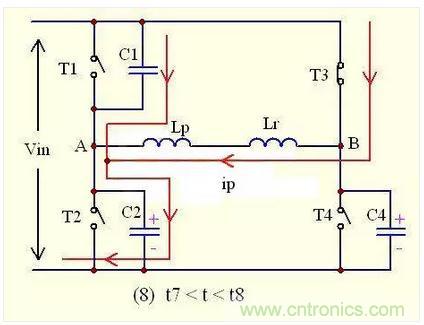 第4、8種工作模式分別是滯后臂與超前臂的諧振模式,稍后上詳細的分析過程