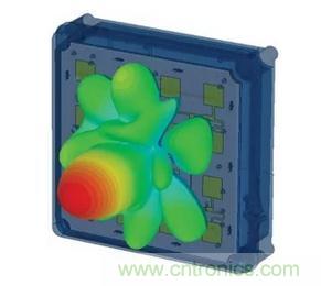 圖3:平板陣列,圖中所示為PCB頂部的天線貼片,IC則位于天線PCB的背面。