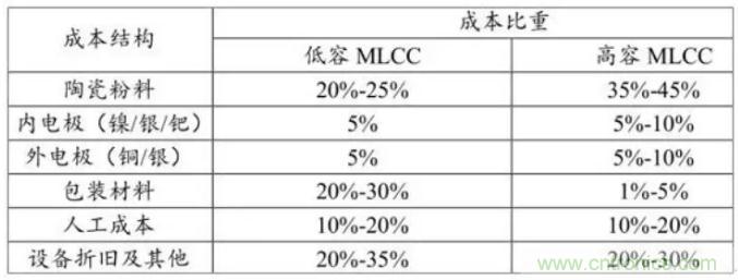 圖4 多層陶瓷電容器的成本結構