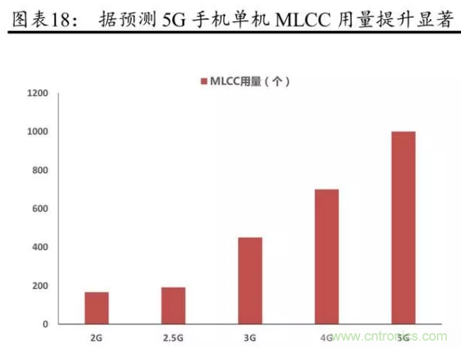 另根據 Kemet 數據,iPhoneX 單部手機對 MLCC需求量超過 1000 只,而 iPhone 6S 對 MLCC需求量為 500 只左右。隨著 OPPO、VIVO、小米、華為等逐步專注于生產中高端機型,有望推動上游 MLCC 需求獲得持續較快的增長。